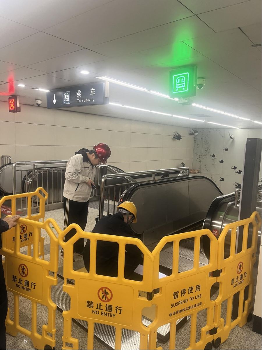 为此,工程机械事业部充分发挥技术优势,针对线路运营特点,对地铁电梯安全隐患进行全方位摸排。此次受检设备均为自动扶梯,针对扶梯的运行特点,检验人员按照检验规程,重点检查了扶梯驱动系统、梯级系统、扶手带系统以及设备周围的防护措施,尤其对易老化、易磨损部件进行了深度检查,对易出现突发状况的各项安全保护装置进行了全面测试。通过对电梯设备的关键点、薄弱点进行“问诊把脉”,对检查出问题的限期整改,进一步消除了安全隐患,预防了事故风险,使地铁特种设备安全工作能够应对各种风险考验和重大挑战,更好适应安全工作需要,更好的服务于首都北京。